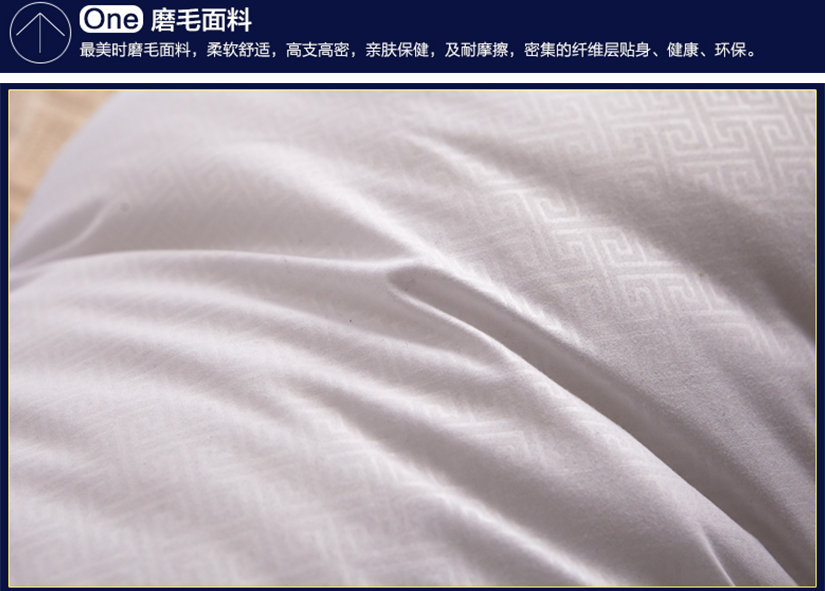 酒店专用交织棉枕芯高支高密,磨毛面料,耐摩擦,安全环保精致欧式压花,端庄不失灵动,让您睡得舒适称心精致锁边,线条流畅自然,大气不俗精湛车缝线使枕芯更加牢固,不易脱线精致拉链,不褪色,耐磨损内填高弹棉细腻顺滑,透气性强